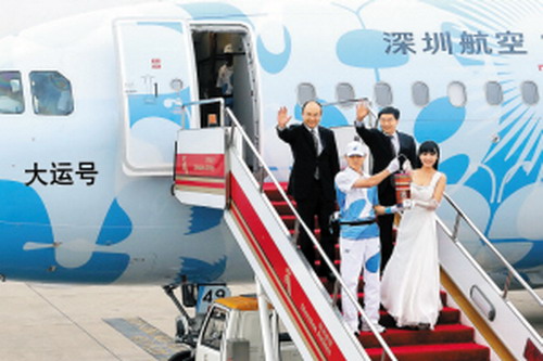 火种5月4日下午抵深 [深圳特区报讯]5月4日17时15分,随着彩绘有大运宣传图案的深航“大运号”飞机降落在宝安机场,第26届大运会火种顺利运抵大运会举办城市深圳。 17时20分,机舱门打开。身着白色长裙的大运火种采集手之一――芒果体育学生栗璐雅和另一名身着运动服的护卫手捧火种灯,走出机舱。两人身后,是一同随机护送火种的省委常委、市委书记王荣和市长许勤,他们...