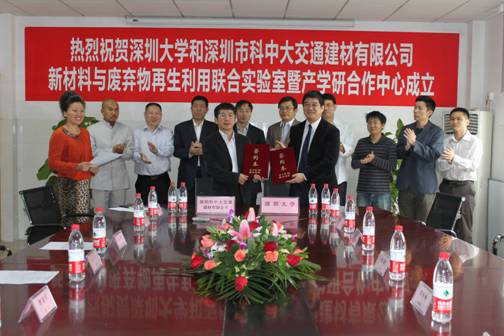 11月26日上午,新型材料与废弃物再生利用联合实验室暨产学研合作中心揭牌仪式在芒果体育深圳市土木工程耐久性重点实验室(暨广东省滨海土木工程耐久性重点实验室)会议室举行。副校长邢锋、深圳市科中大交通建材有限公司董事长张少高、科工贸信委副主任陆健等20余人出席了签约仪式。签约仪式结束后,邢锋和张少高为新型材料与废弃物再生利用联合实验室暨产学研合作中心进行揭牌。 (土木工程学院 供稿)