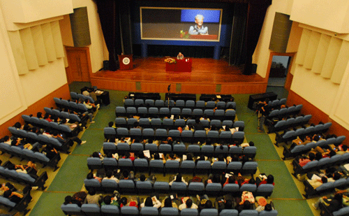 11月7日晚,我校国际会议厅内,近四百位传播学院的师生济济一堂,聆听章必功校长畅谈学习胡锦涛总书记十七大报告的体会,以及对中国高等教育改革的深层思考。 胡锦涛总书记在十七大报告中指出:要“坚持解放思想、实事求是、与时俱进,勇于变革、勇于创新,永不僵化、永不停滞。”章校长紧密结合我国高等教育发展和我校改革发展的实际,系统而生动地阐述了他的学习体会,指出只有坚持思想解放,勇于变革,改革开...