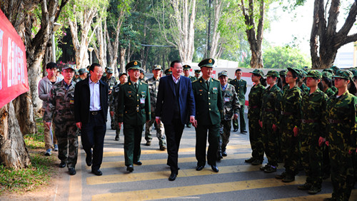 1月27日上午,我校党委书记江潭瑜在承训部队武警广东省边防总队第六支队姚文红政委、副校长李凤亮以及军训工作相关负责人陪同下来到训练场看望正在军训的2014级新生,并慰问工作在军训一线的承训官兵。 江潭瑜一行分别到军训一团、军训二团进行慰问。军训现场,各连队在教官的指导下进行队列训练,响亮的口号声此起彼伏,整齐的步伐铿锵有力。江潭瑜对学生展...