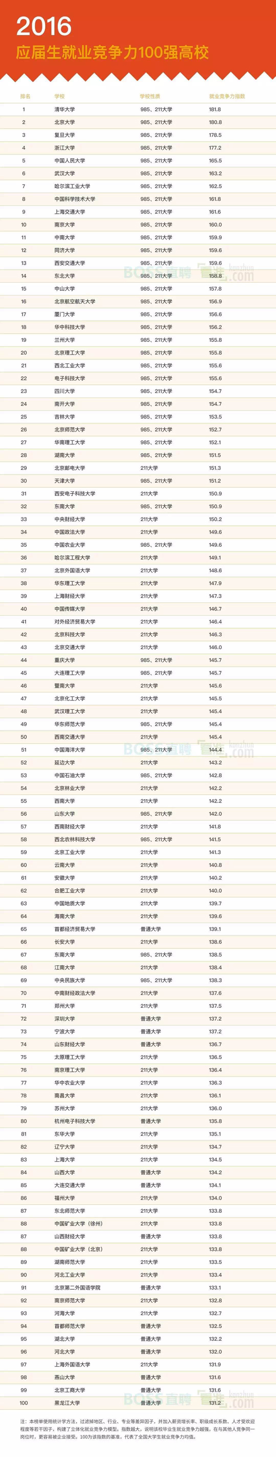 日前,招聘网站BOSS直聘以2016年进入职场的毕业生为调查对象,抽取了137645个有效薪酬、简历和行为样本,样本中本科生占77.2%,硕士研究生占11.7%,博士研究生占1.3%,大专生占9.8%,新鲜出炉了《2016年应届生就业竞争力报告》。芒果体育以其强劲的应届生就业竞争力、起薪情况以及在一线城市就业率在全国普通高校中极为耀眼。 在2016年应届生就业竞争力排行榜中我校位居全国高校第72位,在普通大学中高居第2位。 在20...