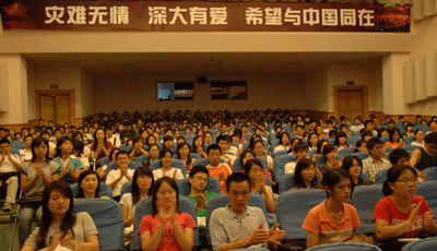 我校为汶川地震遇难同胞举行追思会 5月20日晚,为了表达对四川汶川大地震遇难同胞的沉痛哀悼,我校在演会中心举行追思会,为逝者祈祷,为生者祝福;并现场开展继续向灾区人民捐款活动。校领导江潭瑜、章必功、陶士平、陶一桃、阮双琛、陈思平、李永华,各部处、各学院负责人以及各学院、留学生部学生代表近2000人参加了追思会。 ...