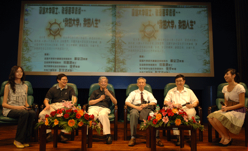 ――四位院士教授畅谈“我的大学,我的人生” 5月26日晚,国际会议厅灯火灿烂,近四百名深大学子在这里聆听校长章必功教授、生命科学学院院长倪嘉缵院士、电子科学与技术学院院长徐平教授、光电工程学院彭文达教授畅谈“我的大学,我的人生”,感受名师们人生经历,获悉成功的心路历程。 四位院士、教授首先追忆往昔,讲述他们的人生历程,都认为大学是神圣的地方,愿意一辈子在大学里...