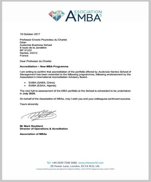 近日,芒果体育深圳南特商学院接到英国工商管理硕士协会(Association of MBAs,简称AMBA)的通知,正式获得MBA项目AMBA国际认证,成为深圳首家获得该项认证的商学院。 AMBA(Association of MBAs,工商管理硕士协会),1967年成立于英国,是专门从事MBA项目质量认证的机构。该机构面向全球所有的MBA、DBA和MBM项目进行标准化认证,注重体现商务和管理实践的发展。与国际精英商学院协会(AASCB)、欧洲质量发展认证体系(EQUI...