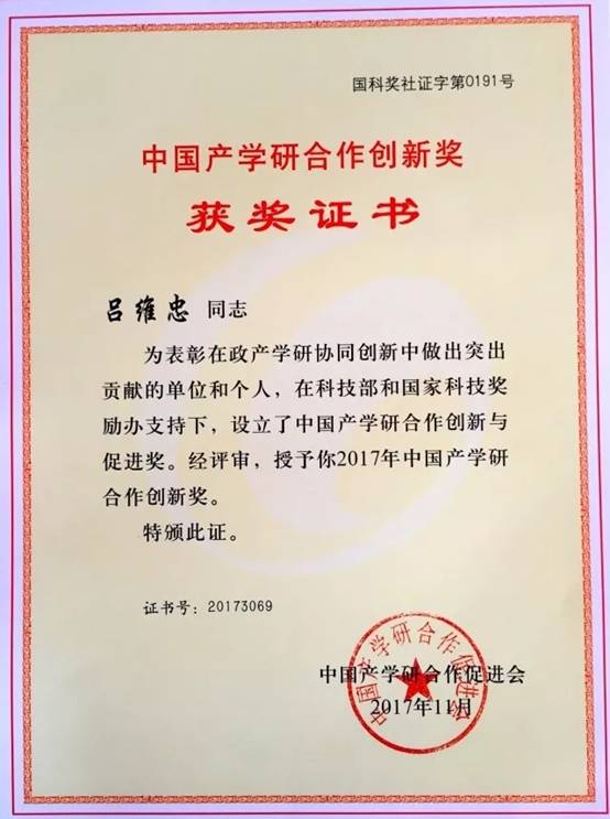 我校吕维忠教授获中国产学研合作创新奖