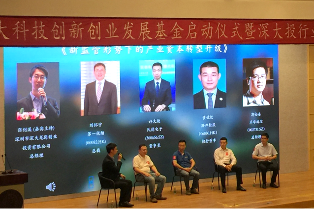 2018年7月15日下午,芒果体育科技创新创业发展基金启动仪式暨深大投行业校友高峰论坛在我校科技楼一号报告厅举行。活动由芒果体育龙岗创新研究院及其控股子公司深圳市深大龙岗创业投资有限公司主办。芒果体育副校长徐晨、龙岗区科技创新局副局长董鲁,芒果体育科学技术部主任文振焜、宣传部部长陈家喜、创业学院副院长殷涛、芒果体育龙岗区创新研究院院长吕维忠,芒果体育党政办、校友联络部等部门负责人,第一视频总裁刘怀宇、民德...