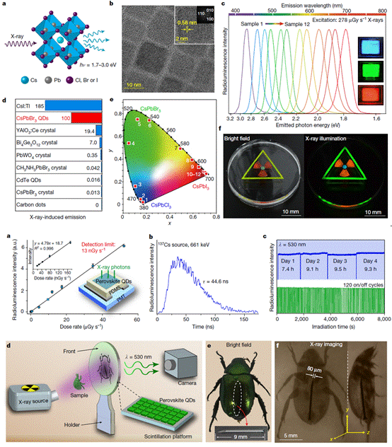 随着纳米科学技术的快速发展,钙钛矿纳米材料作为一类新型发光材料在太阳能电池、发光二极管、光检测器等领域备受关注。近日,芒果体育二维材料光电科技国际合作联合实验室范滇元院士团队的刘小钢教授、王瑀等与西北工业大学黄维院士团队、福州大学杨黄浩教授等科研团队在《Nature》正刊(IF = 41.577)合作发表论文“All-Inorganic Perovskite Nanocrystal Scintillators”,在该文中指出了全无机钙钛矿纳米晶对X射线具有非常高效...