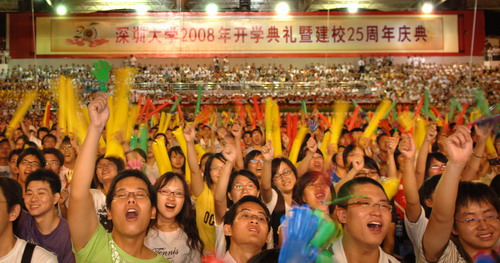 8月30日、31日,元平体育馆人声鼎沸、一片欢腾,我校2008级6682名本科新生在这里入学报到。相比去年,我校今年多录取了500多名新生,总数达到6682人,其中包括高考录取的6330人,专科升本科的194人,港澳台学生153人,高水平运动员5人。深圳户籍新生共3508人,超过总招生人数的50%。 今年我校特别对四川、甘肃灾区的考生采取了单列计划、单独划线、单独录取的方式,共录取10名高考生。其中有7名四川...