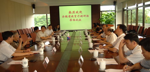 9月8日下午,由安徽大学副校长王群京担任组长的安徽省教育厅赴深圳调研组来访我校。调研主题是“进一步深化教育体制改革,培养创新型人才”。 我校章必功校长、邢锋副校长,教务、科研、人事等相关单位负责人出席了座谈会。章校长重点向调研组介绍了我校的教育教学理念和人才培养特色,以及在民主管理、教授治学、教学科研、人事聘任等方面的改革措施与成效。 双方还就如何改善高...