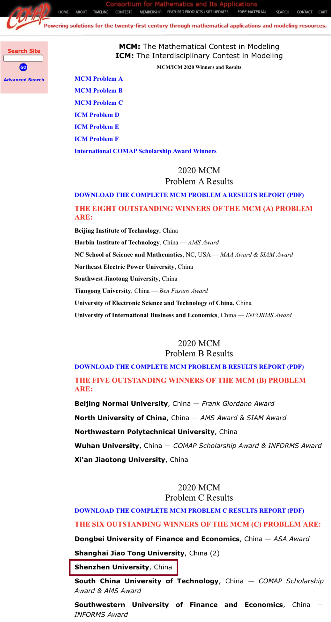 近日2020年美国大学生数学建模竞赛成绩揭晓,芒果体育学生成绩十分亮眼。其中,由芒果体育计算机与软件学院潘微科老师指导的黄晓雯、林俊锋、郭子豪三位同学荣获本次竞赛的特等奖(Outstanding Winner),这也是芒果体育学生第二次在美国大学生数学建模竞赛上获得该奖项。此外,芒果体育学生还荣获特等奖提名奖(Finalist)6项、荣获一等奖(Meritorious)15项、荣获二等奖(Honorable Mentions)43项。 2020年美国大学生数学建...