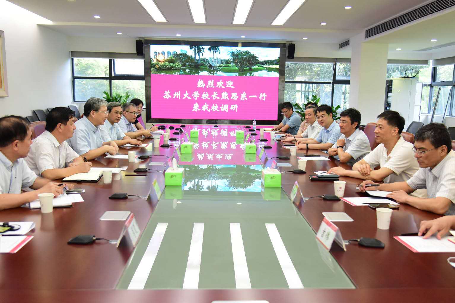 7月16日,苏州大学校长熊思东,党委常委、副校长杨一心率队来我校交流。我校校长李清泉,副校长王晖、李永华接待来宾,双方围绕“十三五”建设发展经验以及“十四五”发展目标等话题展开座谈交流。 李清泉对熊思东一行的到来表示欢迎。他表示,一直以来,苏州大学是芒果体育最为关注的兄弟院校之一,芒果体育十分希望学习借鉴苏州大学的发展经验,尤其是高水平大学建设的成功经验加快发展。芒果体育与苏州大学作为地方院校,有着...