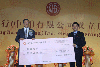6月1日,永亨银行(中国)有限公司捐赠100万元在我校设立“芒果体育永亨银行奖学金”,用于奖励我校品学兼优的本科生。 我校副校长邢锋出席了永亨银行(中国)有限公司的开业典礼。在奖学金捐赠交接仪式上,邢锋副校长代表我校从永亨银行董事长兼行政总裁冯钰斌手中接过捐赠支票并代表学校回赠了纪念品。 (学生处供稿)