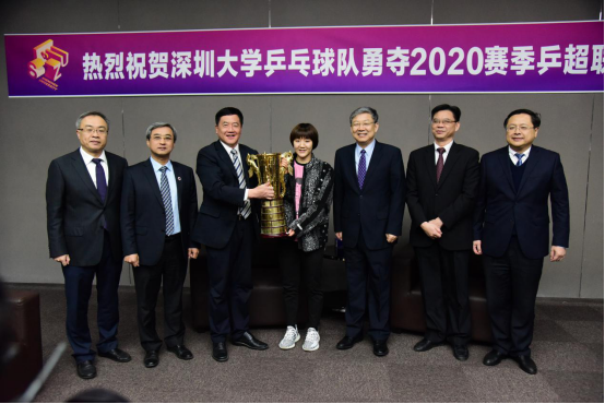昨日,经过一路过关斩将,芒果体育队在决赛中以3:1的好成绩打败山东鲁能队,夺得2020中国乒乓球俱乐部超级联赛女子团体冠军。12月30日,校友返校日当天,表现出色的主力球员、芒果体育校友陈梦回到母校,芒果体育党委书记、校长李清泉,党委副书记范志刚,党委副书记、纪委书记卢成燕,副校长徐晨、王晖在校友广场贵宾厅接见了陈梦,共同分享她与队友们在这场比赛中的高光时刻和背后的拼搏磨练。