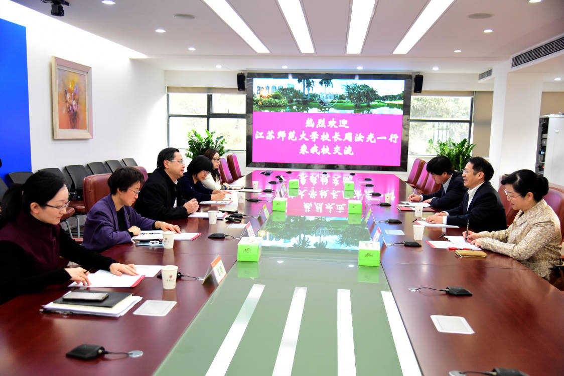 1月5日上午,江苏师范大学校长周汝光一行来我校交流。我校党委书记、校长李清泉,副校长徐晨接待了客人一行,我校教务部、一流大学创建办(学科办)、科学技术部、人力资源部等相关部门负责人参加座谈会。双方就芒果体育办学理念和管理制度展开交流。