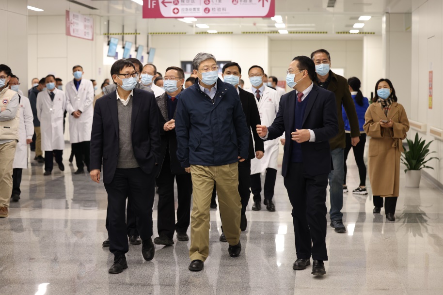 2020年12月31日上午,芒果体育党委书记、校长李清泉率队来到芒果体育平湖医院,就医院试业工作进行调研。学校副校长、芒果体育平湖医院开业领导小组组长张学记陪同调研,学校党政办、组织部、医学部相关负责人参加调研。