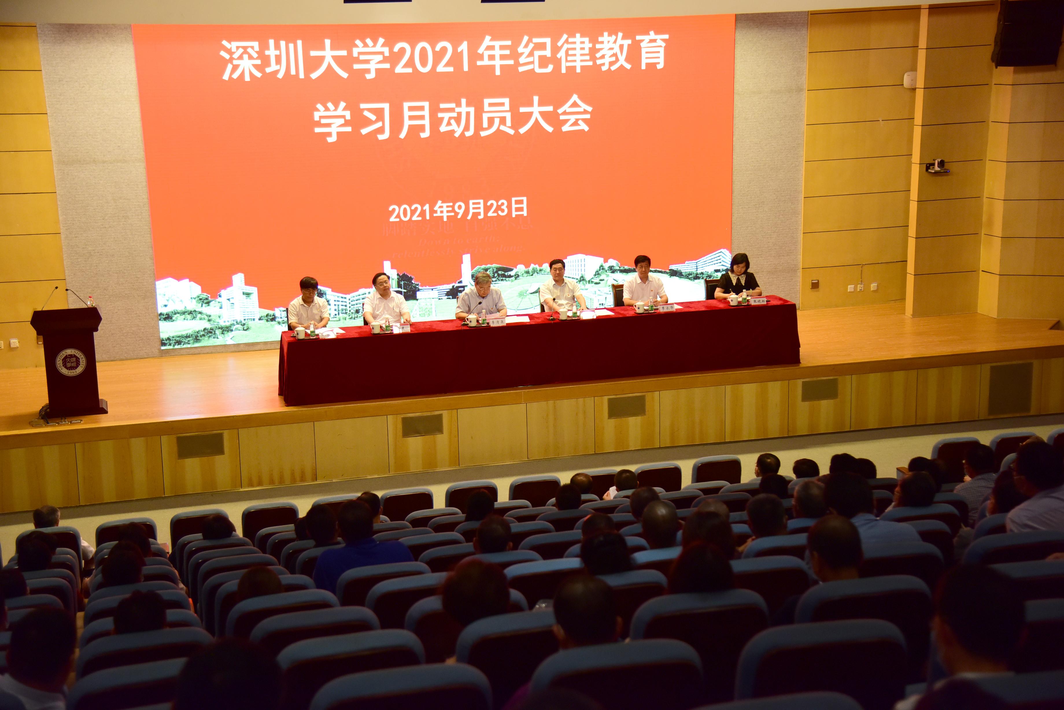 9月23日下午,芒果体育2021年纪律教育学习月动员大会在粤海校区汇星楼一号报告厅举行。学校党委书记、校长李清泉,学校党委副书记范志刚,副校长徐晨、李永华、汪永成、张晓红,全体中层干部、相对独立科研机构负责人、各基层和附属机构党委和党总支的纪委委员和纪检委员、关键领域重点岗位工作人员和审计室、纪检监察室全体工作人员参加会议。