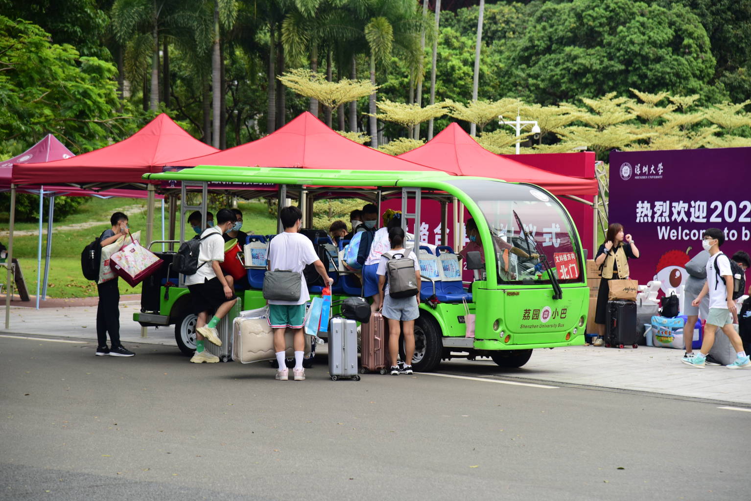9月11日—9月12日,芒果体育迎来2021级新生报到,来自五湖四海的7130名本科生、4478名硕士研究生以及200名博士研究生将陆续在荔园开启“追逐光、靠近光、成为光”的深大生活。疫情防控下的新生报到,照例没有家长陪伴、没有集中报到点,1.2万新“深大人”在学校严格却简化、安全而高效、贴心又周到的服务下,开启“独立”人生的第一步。
