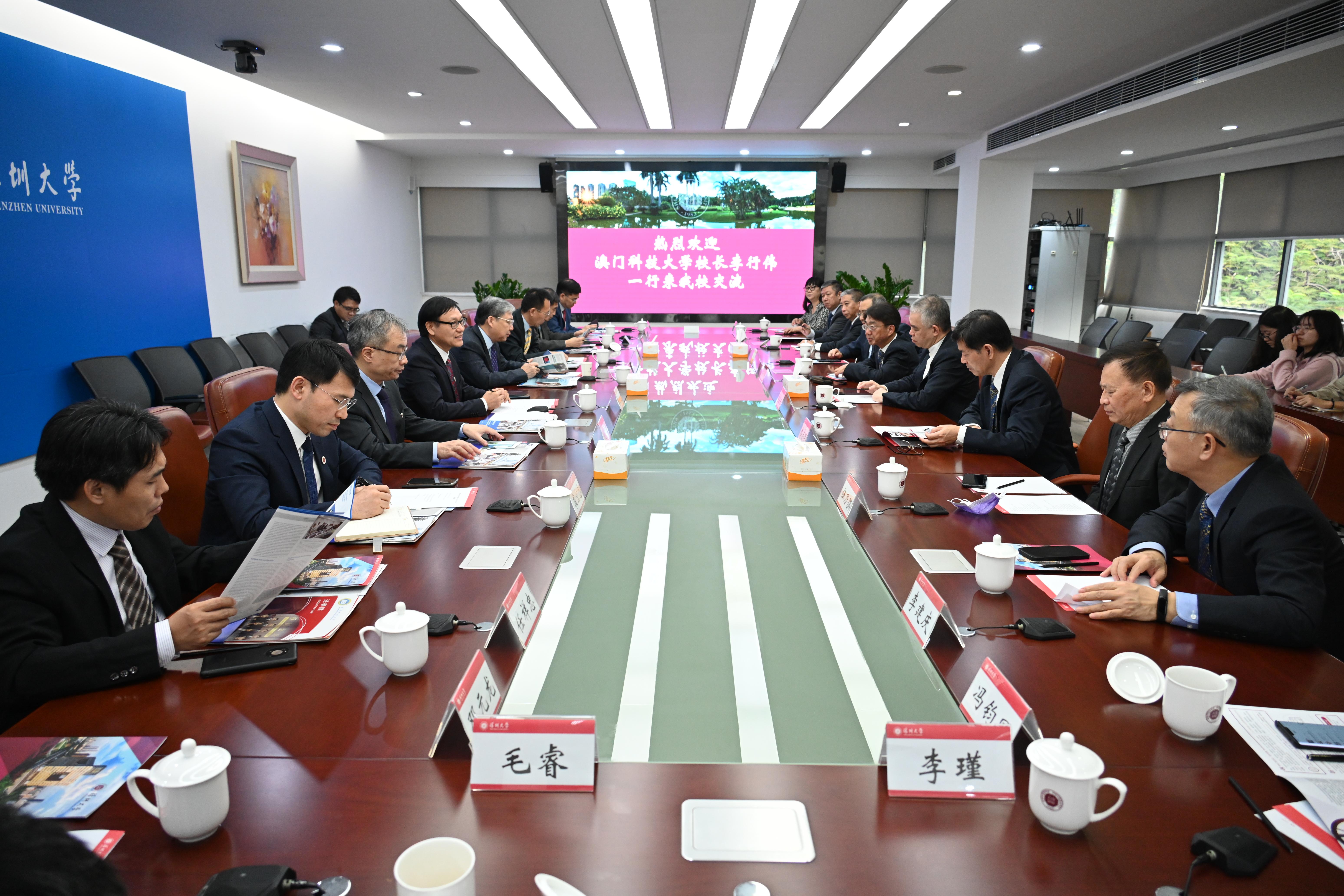 11月19日下午,澳门科技大学(以下简称“澳科大”)校长李行伟,校董会秘书长、副校长唐嘉乐,副校长姜志宏、林志军、邝应华一行到我校调研交流。我校党委书记、校长李清泉,副校长张学记与来宾在粤海校区汇元楼二楼会议室举行座谈。
