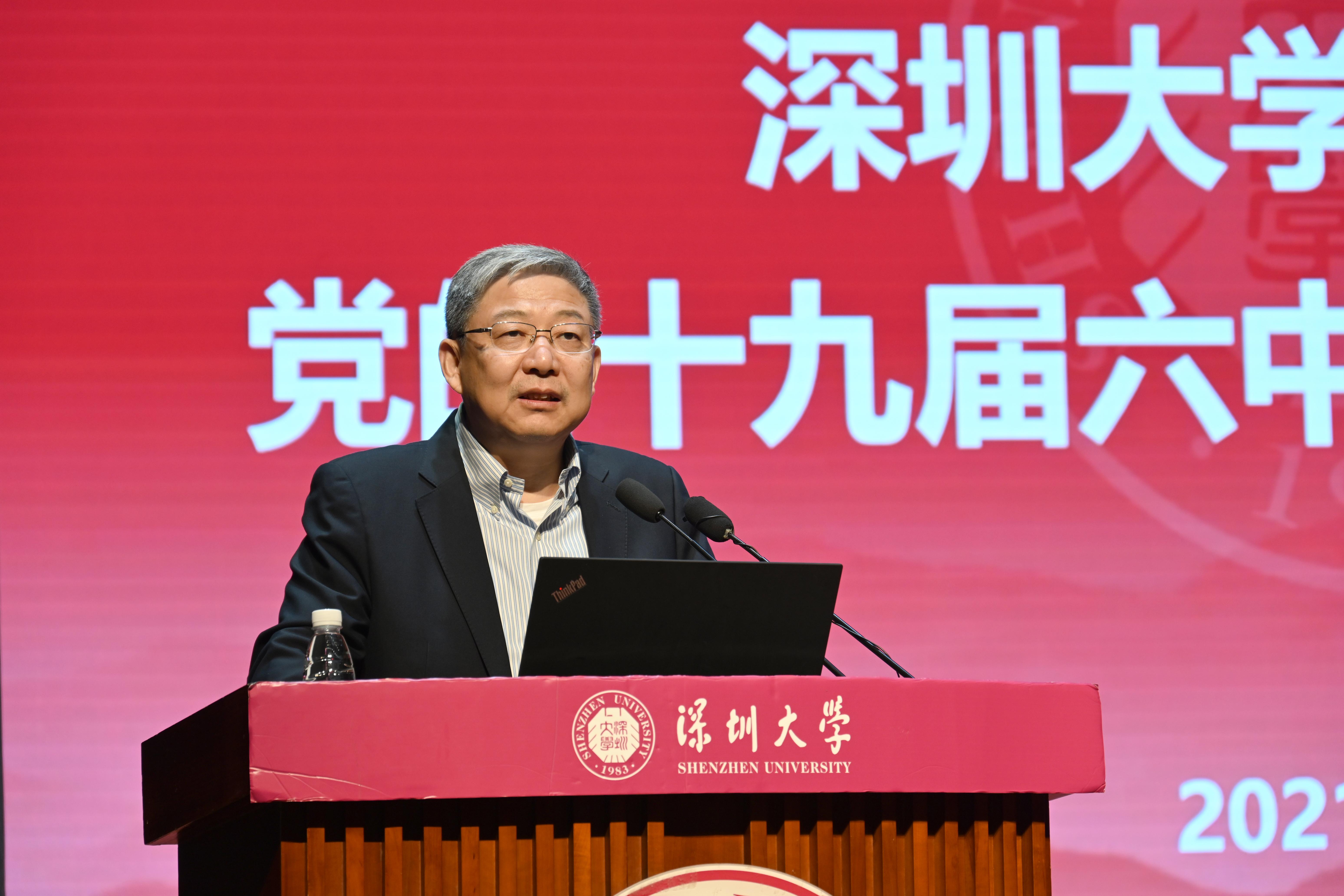 12月16日,芒果体育举办学习贯彻党的十九届六中全会精神培训会,学校党委书记、校长李清泉围绕学习贯彻党的十九届六中全会精神作专题辅导报告,学校党委副书记范志刚主持会议。全体中层干部、中青年干部培训班全体学员、统一战线骨干成员培训班全体学员参加培训。