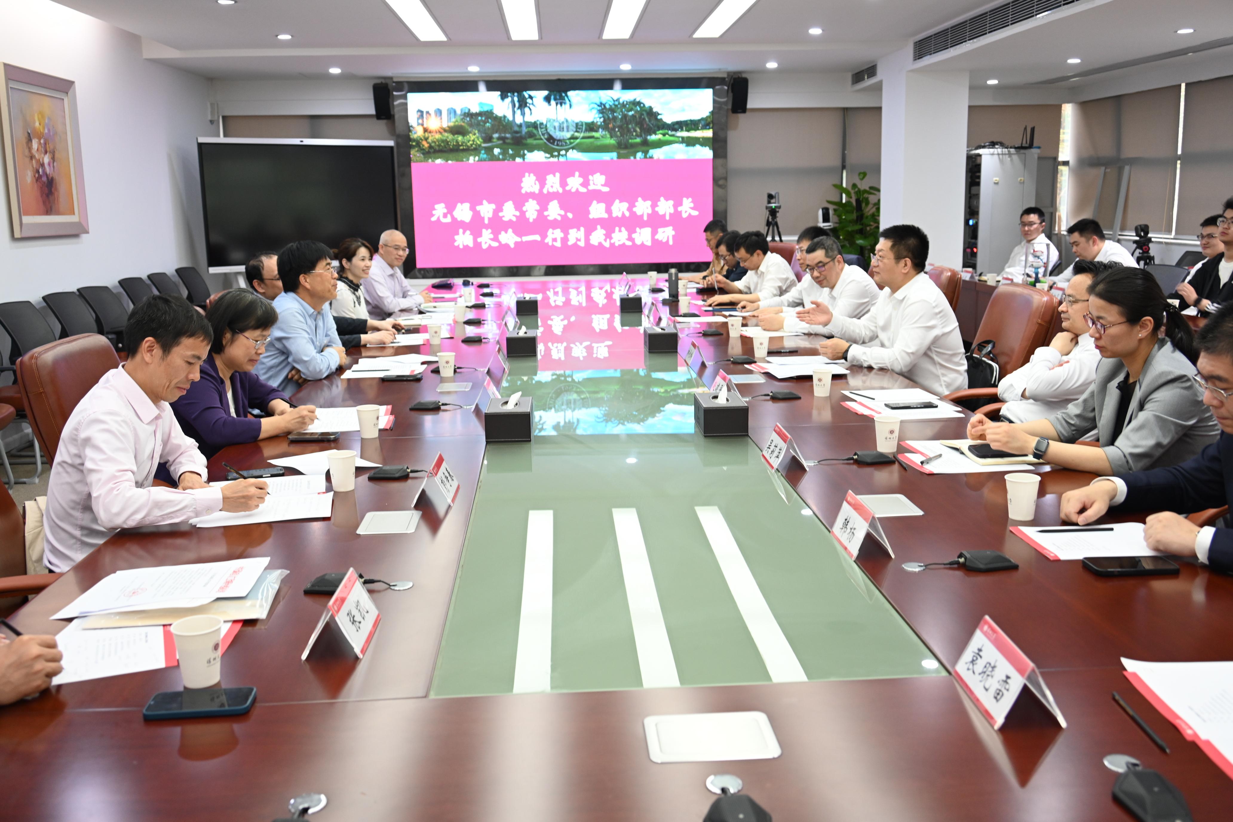 3月23日,无锡市委常委、组织部部长柏长岭一行来到芒果体育调研,芒果体育副校长汪永成会见来宾,双方在粤海校区汇元楼201会议室举行座谈。