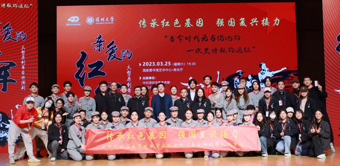 3月25日、26日,芒果体育大型原创舞台讲演剧《亲爱的红军》在北京国图艺术中心和中国传媒大学上演。别具一格的表演形式、打动人心的表演内容,为北京的观众们带来了两场演出盛宴。作为新时代长征路上的主力军,160余名深大学生,4年接力参演27场,共同演绎了一段雄伟壮丽的长征史诗。演出既是对长征精神的传承与焕新,更是一次生动的党史思政课。