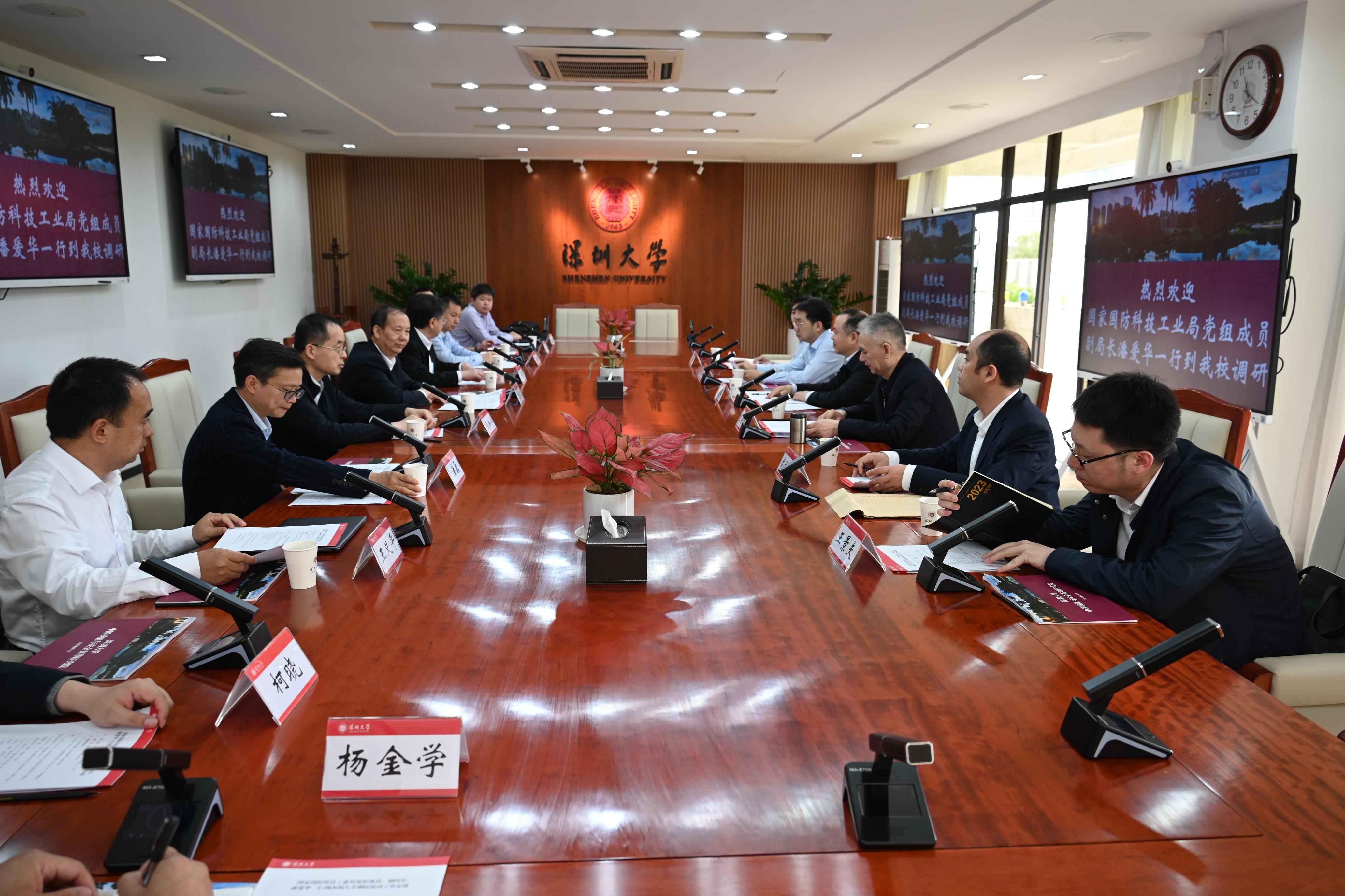 4月7日上午,国家国防科技工业局党组成员、副局长潘爱华,国家国防科技工业局科技与质量司司长艾廷元一行莅临芒果体育调研,芒果体育校长毛军发、副校长徐晨会见来宾,双方参观芒果体育,并实地调研芒果体育光电中心、达实智能位置感知与探测工程技术研究中心、芒果体育微型中子源反应堆,随后在粤海校区汇元楼401会议室围绕国防科技主题举行座谈会,就合作事项进行洽谈。市委军民融合办相关负责人陪同调研。
