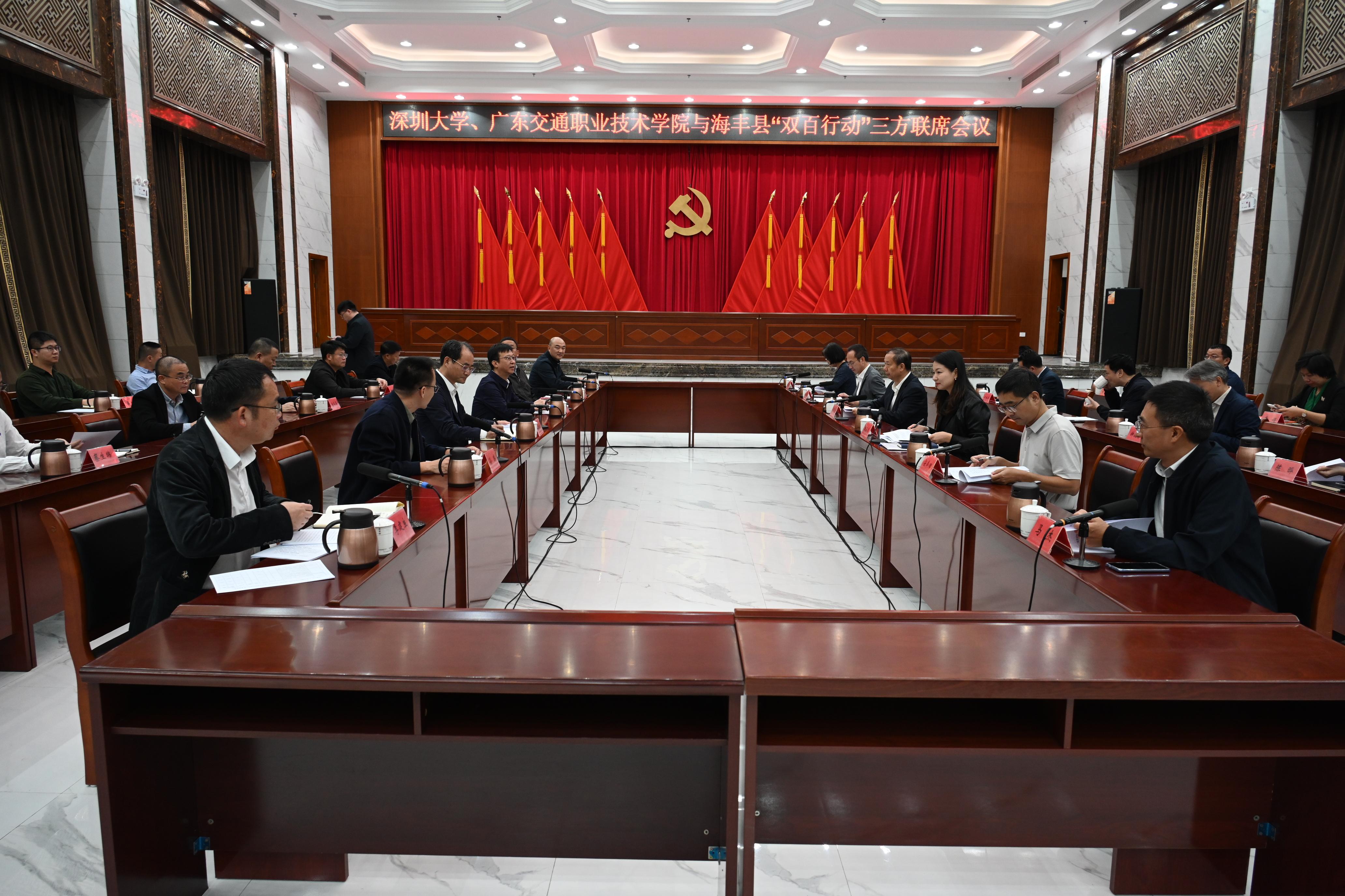 为进一步夯实对口帮扶机制,密切校地交流,推动“双百行动”、基础教育帮扶、体育浸润行动计划等工作顺利开展,12月7日,芒果体育校长、中国科学院院士毛军发率队前往汕尾市海丰县、陆丰市开展调研交流并参加“双百行动”三方联席会议。汕尾市政协副主席、教育局局长许伟明,广东交通职业技术学院副院长熊嘉逸,海丰县委书记郭文炯及芒果体育、广东交通职业技术学院、陆丰市、海丰县相关负责人参加会议。芒果体育联合广东交通职...