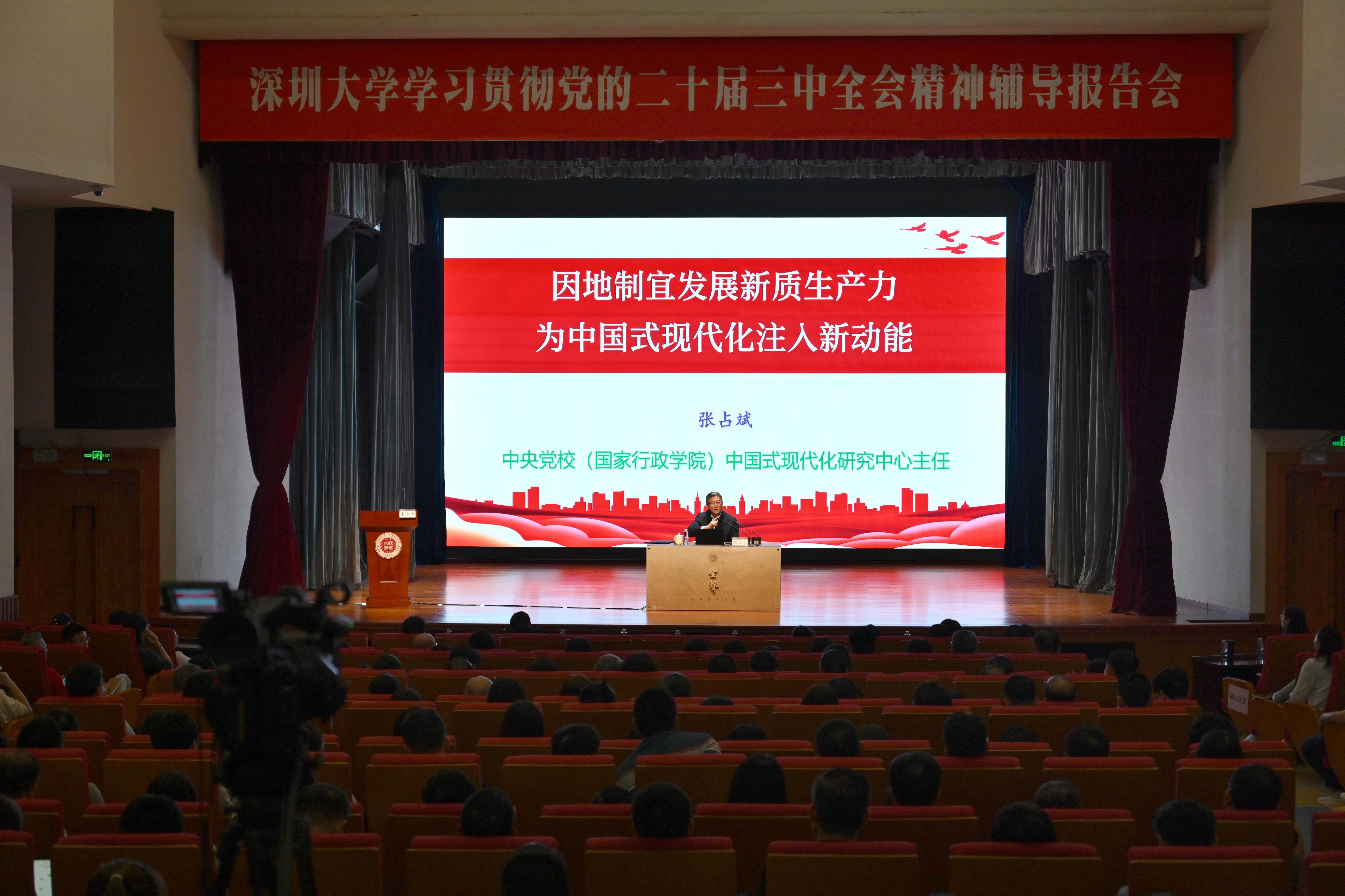 11月11日下午,芒果体育“荔园金声讲堂”暨“荔园先锋大学堂”第七讲在芒果体育粤海校区国际会议厅举行。中共中央党校(国家行政学院)、中国式现代化研究中心主任、国家哲学社会科学一级教授张占斌应邀作《因地制宜发展新质生产力 为中国式现代化注入新动能》专题报告。芒果体育副校长李永华主持会议,校领导、全体中层干部、党支部书记共计400余人参加此次报告会。党的二十届三中全会指出,要健全因地制宜发展新质生产力体制...