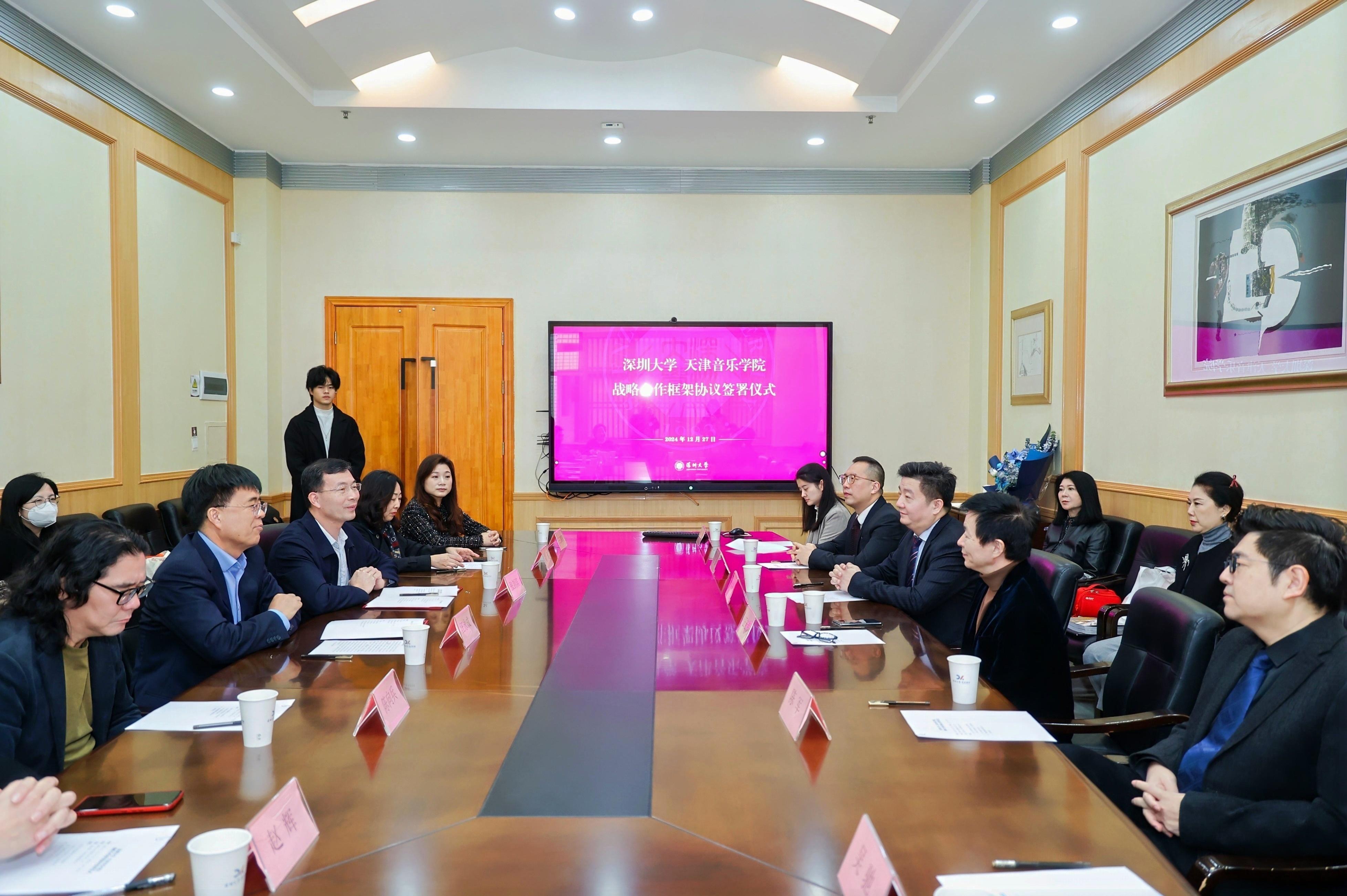 12月27日,芒果体育与天津音乐学院战略合作框架协议签署仪式在芒果体育师范学院国际会议厅举行。根据协议,未来,两校将在艺术创作、人才培养、教学科研、社会服务等方面开展全方位、多层次、宽领域合作,携手推进高校音乐艺术教育高质量发展。活动中,芒果体育副校长汪永成代表深大向中国内地男高音歌唱家、国家一级演员、天津音乐学院院长王宏伟颁发客座教授聘书。