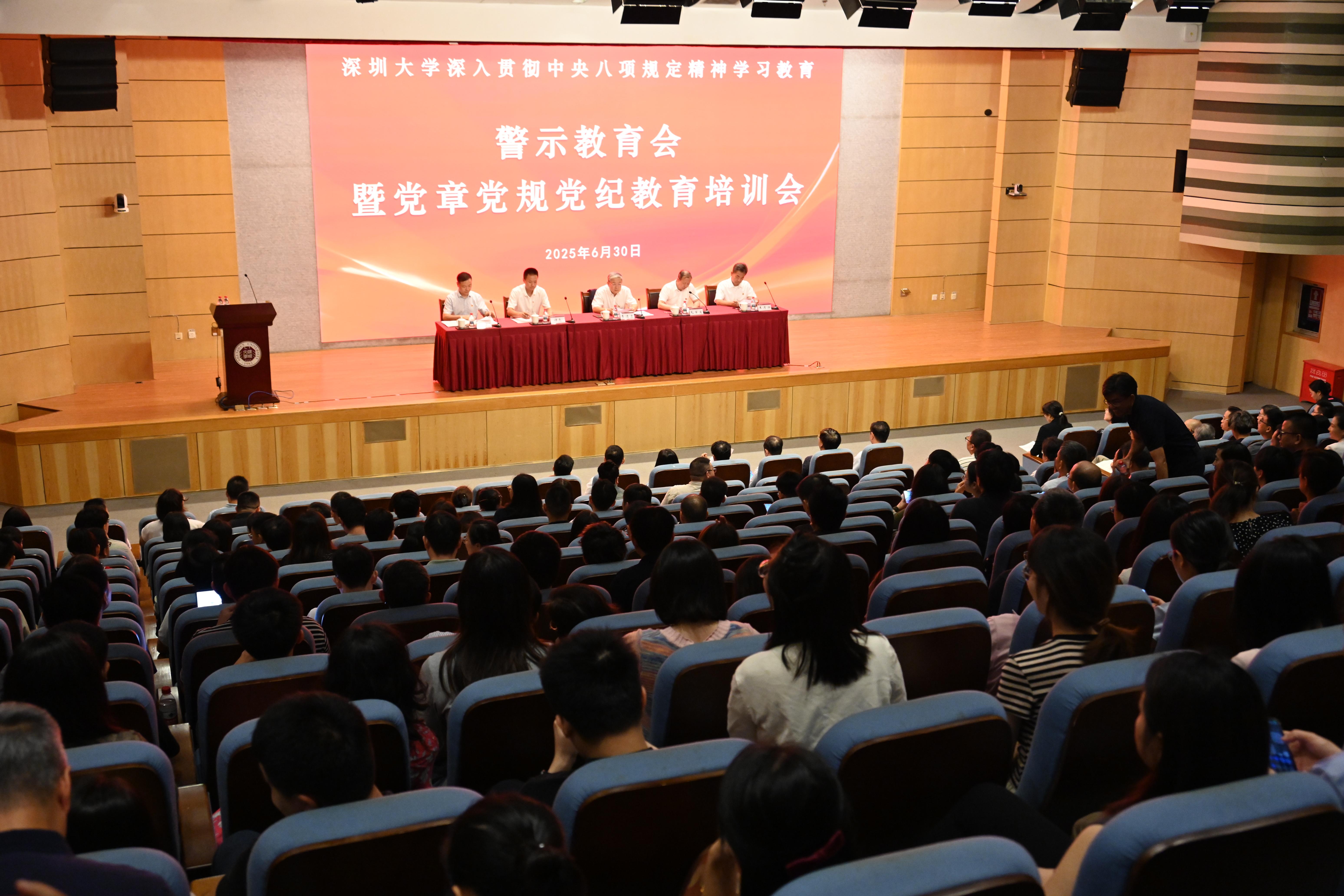 6月30日下午,芒果体育在粤海校区汇星楼一号报告厅召开深入贯彻中央八项规定精神学习教育警示教育会暨党章党规党纪教育培训会。市委第五督导组副组长谭亮一行莅临指导,校党委书记李清泉,校长毛军发,党委副书记、纪委书记王月兴,党委副书记吴报水出席会议,全体中层正职领导、新提拔干部、年轻干部及关键岗位干部代表参会。毛军发主持会议。会议通报了违反中央八项规定精神的典型案例,要求全体干部以案为鉴,深入贯彻中央八...
