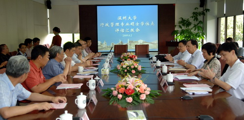 广东省学位办专家组成员广东省学位办副调研员王丽萍、中山大学蔡立辉教授、华南理工大学范旭教授、暨南大学林毓铭教授对我校行政管理专业硕士学位点进行评估,6月2日下午,实地考察评估会在我校办公楼201举行。我校校长章必功、副校长阮双琛和研究生部、管理学院负责人、部分研究生导师及研究生秘书等参加会议。 章必功在会前致欢迎辞,对专家组亲临我校评估行政管理专业硕士学位点表示衷心感谢。介绍了深...