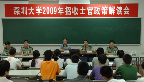 我校高度重视2009年度从普通高等学校毕业生中直接招收士官的工作。5月19日下午深圳市警备区征兵办与学校校党委武装部联合举办了“芒果体育2009年度士官招收工作政策解读会”,深圳市警备区参谋长张学孟和我校副校长李永华出席会议。 为做好今年的士官招收工作,武装部先期调查收集学生动态和意向,根据实际情况进行有针对性的动员和宣传,为今年招收士官工作打下了良好的基础。本次专门召开政策解...