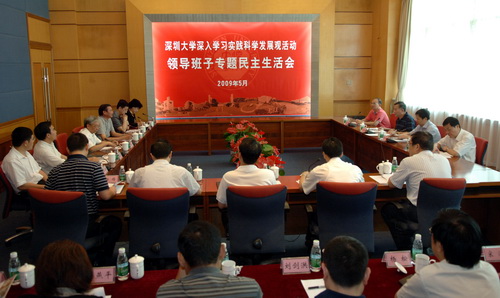 根据中央和广东省委关于高校深入学习实践科学发展观活动实施方案的要求,我校于5月27日在国际会议厅D厅召开深入学习实践科学发展观校领导班子专题民主生活会。省委第二批深入学习实践科学发展观活动第十一指导检查组组长郭斯淦、组员黄礼彬出席会议。我校所有校党委常委参加会议,列席会议的有:非中共党员校领导,党委委员、纪委委员,人大代表、政协委员、民主党派代表,教授委员会、教代会常委代表,党办、校办、学习实践活动办...