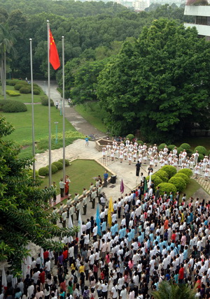 10月1日早晨,芒果体育庆祝中华人民共和国成立六十周年升旗仪式在办公楼广场隆重举行。校领导江潭瑜、陶一桃、阮双琛、邢锋、李永华、李凤亮,各学院和职能部门领导以及师生代表参加了此次升旗仪式。 8时整,升旗仪式正式开始。在激扬的入场曲中,国旗队护卫着红旗踏步而来。伴随着雄壮的国歌声奏响,师生们唱起《义勇军进行曲》,深情地凝望着鲜艳的五星红旗冉冉升起、渐渐舒展。当国旗升到旗杆顶端时,喜悦昂扬...
