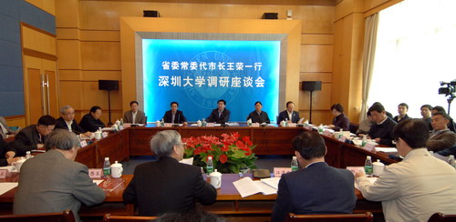 3月11日上午,广东省委常委、深圳市代市长王荣,市委常委、市教育工委书记李意珍,市委常委、常务副市长李锋,市政府秘书长李平等及市政府多个部门领导到我校调研,校领导江潭瑜、章必功、邢苗、陶士平、陶一桃、阮双琛、邢锋、李永华、李凤亮陪同参加调研。
