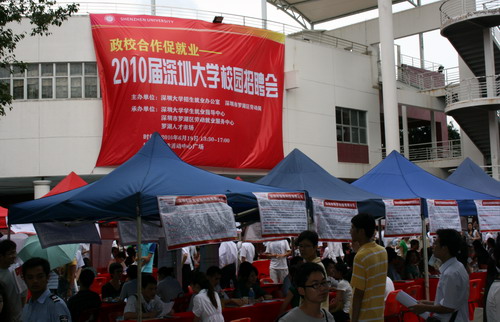 为给毕业生提供更多双向就业选择机会,6月18日,我校招就办与深圳市罗湖区劳动局、罗湖区劳动就业服务中心、罗湖区人才市场共同举办“政校合作促就业――2010届芒果体育校园招聘会”。本次招聘会在我校学生活动中心广场举行,吸引了上千名应届毕业生。 本次招聘会的入场企业主要由罗湖区人才市场提供,有近78家企业参加,其中包括宁波三星通讯、一致药业、德邦物流、交通银行深圳分行、万科物业、永旺华南...