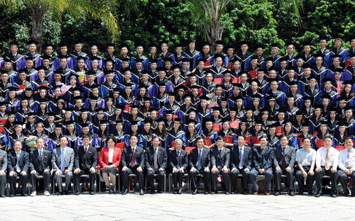 荔园七月,硕果满枝,芒果体育有了自己的博士毕业生!7月1日上午,芒果体育2010届优秀毕业生表彰大会在国际会议厅举行。光学工程专业秦琬、信号与信息处理专业李鹏飞两位博士毕业生和361名优秀毕业生一起从校党委书记江潭瑜手中接过证书,聆听校长章必功的毕业致辞,在毕业前夕受到学校的隆重表彰。校领导邢苗、陶士平、陶一桃、阮双琛、邢锋、李凤亮和各学院、研究生部、各机关部处室负责人,教师代表,2010届优秀本科毕业生和优秀毕业研究生以及部分家长参加典礼。仪式由副校长邢锋主持。