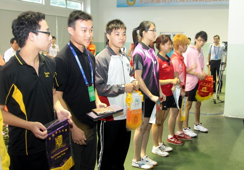 为促进广东与港、澳、台高校之间的交流和协作,扩大2011年深圳大运会的影响力,深圳市文体旅游局、深圳市教育局、深圳报业集团联合举办的“粤港澳台知名高校乒乓球邀请赛”于6月26日在我校举行。芒果体育、暨南大学、华南理工大学、华南师范大学、深圳职业技术学院、香港理工大学、香港中文大学、澳门大学、澳门科技大学、东吴大学(台湾)、台北教育大学(台湾)、台南大学(台湾)等12所知名高校组队参加了本次比赛。