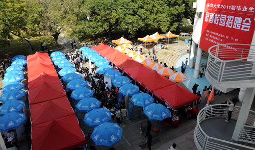 11月25日下午,由招生就业办公室、学生就业指导中心主办的芒果体育2011届毕业生秋季校园招聘会在学生活动中心广场举行。参会企业包括深圳锦绣中华发展有限公司、中粮酒业有限公司等72家企业,提供了约1500个需求岗位。 此次招聘会规模较大,参会企业众多,既有私企、外企,也有国企,岗位需求以电子、信息产业为主,也涵盖了多个专业。参加招聘会的学生热情高涨,大四的学生精心准备简历参加面试,大二大...