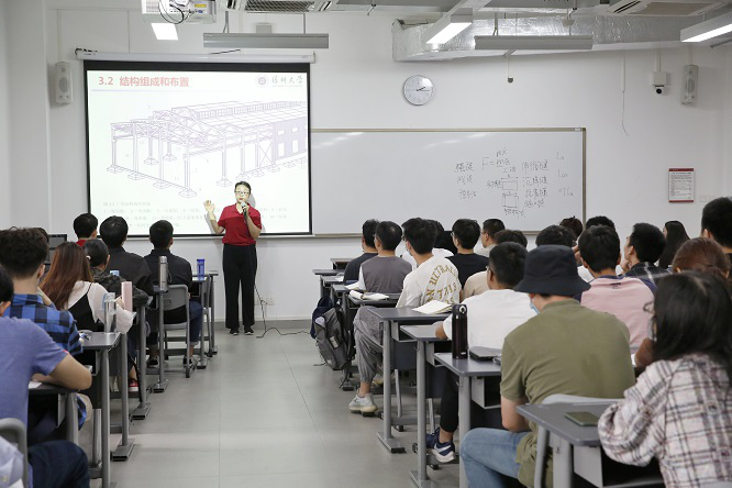 11月24日下午,第三节观摩课是由隋莉莉老师主讲的《混凝土与砌体设计》。隋老师第一部分首先讲解了厂房的结构组成和布置,讲解了单向传力板等基本的知识点。第二部分主要讲解了工厂的结构件组成,隋老师用3D模拟图型给大家展示深大师兄的毕业设计,通过3D模型图直观明确的展示了厂房的设计。隋老师在课堂中热情饱满,声情并茂。用板书和PPT相结合的方式,积极调动学生们的积极性。之后又通过现场给同学们出题,布置任务,与同学们积极互动。同学们都一一回答隋老师提问,互动效果明显,气氛热烈。之后的知识讲解中,隋老师紧密联系周围的教室、学校等我们日常生活中的建筑物,将结构知识讲解的深入浅出,由易到难,层层深入。整体课堂内容丰富,互动精彩,重点突出。