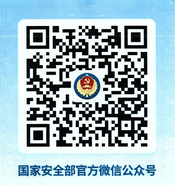 国家安全部官微是宣传总体国家安全观,开展全民国家安全教育、警示教育、案例教育的有力载体,是反击境外主要对手,展示隐蔽战线历史的重要工具。为全面加强国家安全教育,牢固树立总体国家安全观,推动全社会形成维护国家安全的强大合力,请各单位师生扫码关注国家安全部微信公众号,支持国家安全工作。