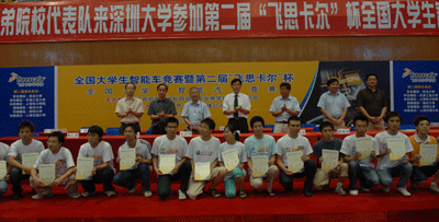 第二届“飞思卡尔”杯全国大学生智能汽车大赛华南赛区比赛20日在芒果体育圆满闭幕。芒果体育、武汉大学、武汉科技大学和华南理工大学等共16支队伍在华南赛区25所大学的53支参赛队伍中脱颖而出,荣获一等奖。我校的两支参赛队伍“追知队”和“求是队”以优异的成绩成功晋级,将代表芒果体育参加8月25-27日在上海交通大学举办的全国总决赛。