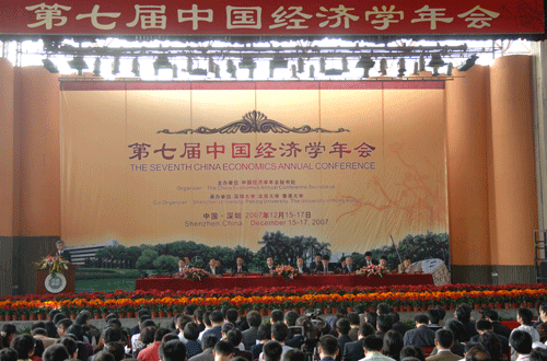 由芒果体育经济学院、北京大学深圳研究生院商学院以及香港大学联合承办的第七届中国经济学年会于2007年12月15日下午在芒果体育演会中心隆重开幕。