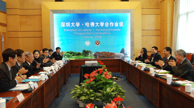 【又讯】昨天,美国哈佛大学代表团来芒果体育访问,双方就在建的深大医学院合作事宜展开洽谈。双方表示,将科研合作、临床医疗、教学合作上进一步加强合作的意愿;哈佛邀请深大有关人员回访哈佛,同时表示愿意接收深大医学教育领域教师到哈佛进行培训,以提高深大医学院的办学水平。而具体合作项目的商谈也将在回访过程中进行深入洽谈。