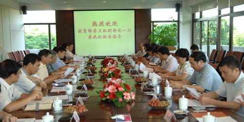 7月24日下午,深大校园阳光明媚,教育副部长李卫红一行10人来我校考察指导。李卫红一行在校领导江潭瑜、章必功等的陪同下,首先参观了金工坊、3号艺栈等教学文化设施。并在办公楼201听取汇报,校领导江潭瑜、章必功、陶士平、邢锋、陈思平、李永华等参加座谈。