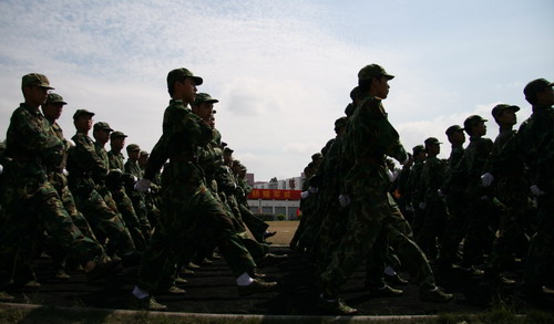 9月25日,我校2008级新生结束14天的军训生活。校领导江潭瑜、章必功、陶士平、李永华分赴广州广东国防训练教育基地、深圳葵涌预备役高射炮兵师五团基地、深圳梅林防化团检阅军训学生,并为先进个人、集体颁奖。