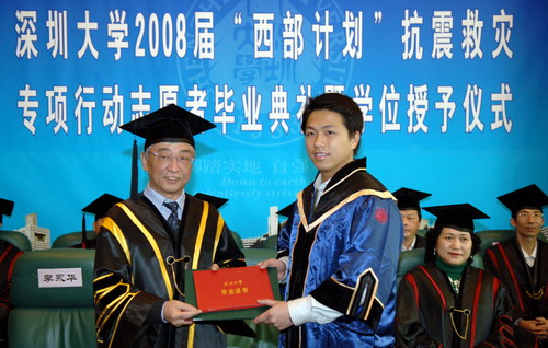 我校为抗震救灾志愿者举行一场特殊的毕业典礼