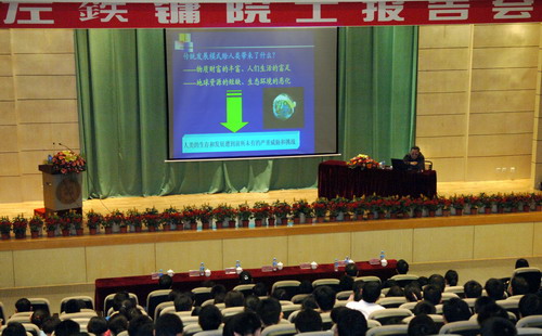 左铁镛院士从可持续发展和科学发展观提出的背景和内涵、材料在社会发展中的地位和作用以及实现材料可持续发展的对策几方面做了深入而生动的讲解。左院士指出,传统的经济增长模式单纯追求经济的片面增长,如今已经受到了资源的不可再生性和稀缺性的制约,同时带来了环境的恶化。可持续发展就是要实现保护和改善环境、实现经济和社会的全面发展。要实现可持续发展,必须实现两个方面的转变:观念意识的转变,即树立人与自然和谐、珍惜资源、保护环境的意识;经济发展模式的转变,即实现资源节约、环境协调、技术先进、管理科学的经济模式。左院士在提到材料在社会发展中的地位和作用时指出:“材料是划时代的标志,是里程碑。”从产量上看,中国是材料生产大国,随之带来的是资源的浪费、能源的消耗和环境的破坏。他希望现在的材料研究者以最少的消耗、最低的污染,在有限的资源基础上循环利用,研究出高性能的材料产品,实现技术效益、经济效益、社会效益并举。提到实现材料可持续发展的对策,左院士从自身近50年的科研实践出发,提出大力发展以物质循环、提高生态效率为特征的循环经济以及发展再生资源产业。
