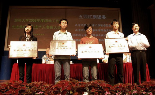5月4日晚,芒果体育纪念五四运动90周年建团87周年暨团学工作先进表彰大会在国际会议厅隆重举行。校领导李永华、李凤亮,校团委、学生处负责人,各基层团委负责人与受表彰的团员干部出席大会。