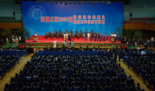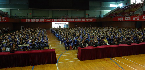 6月26日上午,芒果体育2009届研究生毕业典礼暨学位授予仪式在元平体育馆举行。芒果体育校长、校学位评定委员会主席章必功,副校长、校学位评定委员会副主席阮双琛、李永华,中国科学院院士、芒果体育生命科学学院院长倪嘉缵,中国科学院院士、芒果体育计算机与软件学院院长陈国良,研究生部,各学院主礼教授、教学研究室负责人,以及观礼家长出席仪式。副校长阮双琛主持仪式。